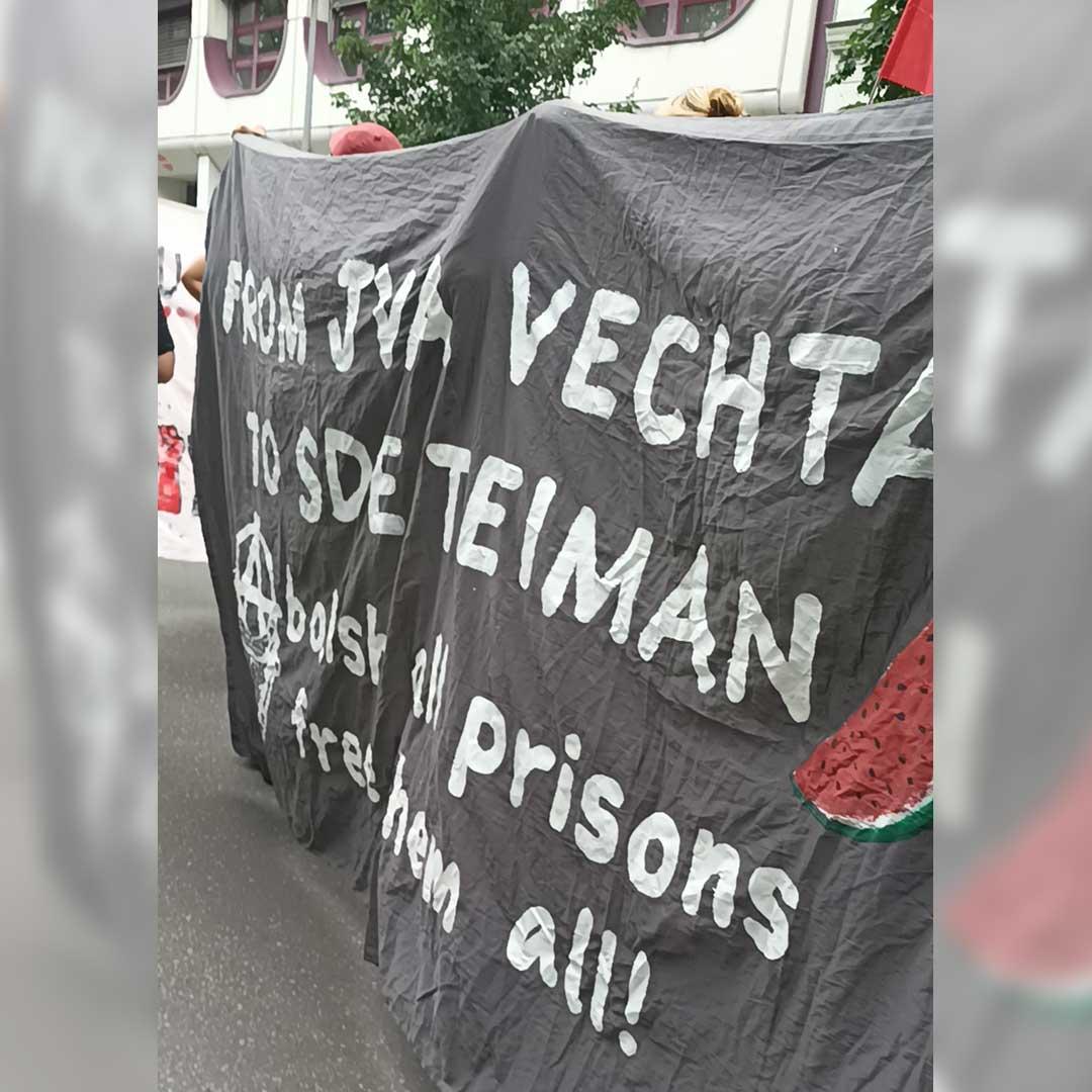 Ganz anders jedoch werden Menschen aus den Kämpfen für Emanzipation unnachgiebig und mit Härte verfolgt und manchmal für lange Jahre weggesperrt: Antifas werden inhaftiert und verfolgt. Die Gefährt*innen N. und M., die in bayrischen Knästen gefangen sind und mit 129a bedroht und das wegen einer linken Zeitungsproduktion, d.h. wegen ihrer Gesinnung. Die vielen Genoss*innen der kurdischen und türkischen Bewegungen, die seit Jahrzehnten verfolgt und in Komplizenschaft aller deutschen Regierungen mit jener der Türkei lange Jahre in deutschen Gefängnissen eingesperrt werden. Klimaaktivist*innen oder Tausende der Palästina-Solidarität sind von vielfältiger Repression, von Knast bis zur Abschiebung, von Veranstaltungs- bis zu Einreiseverboten betroffen.”