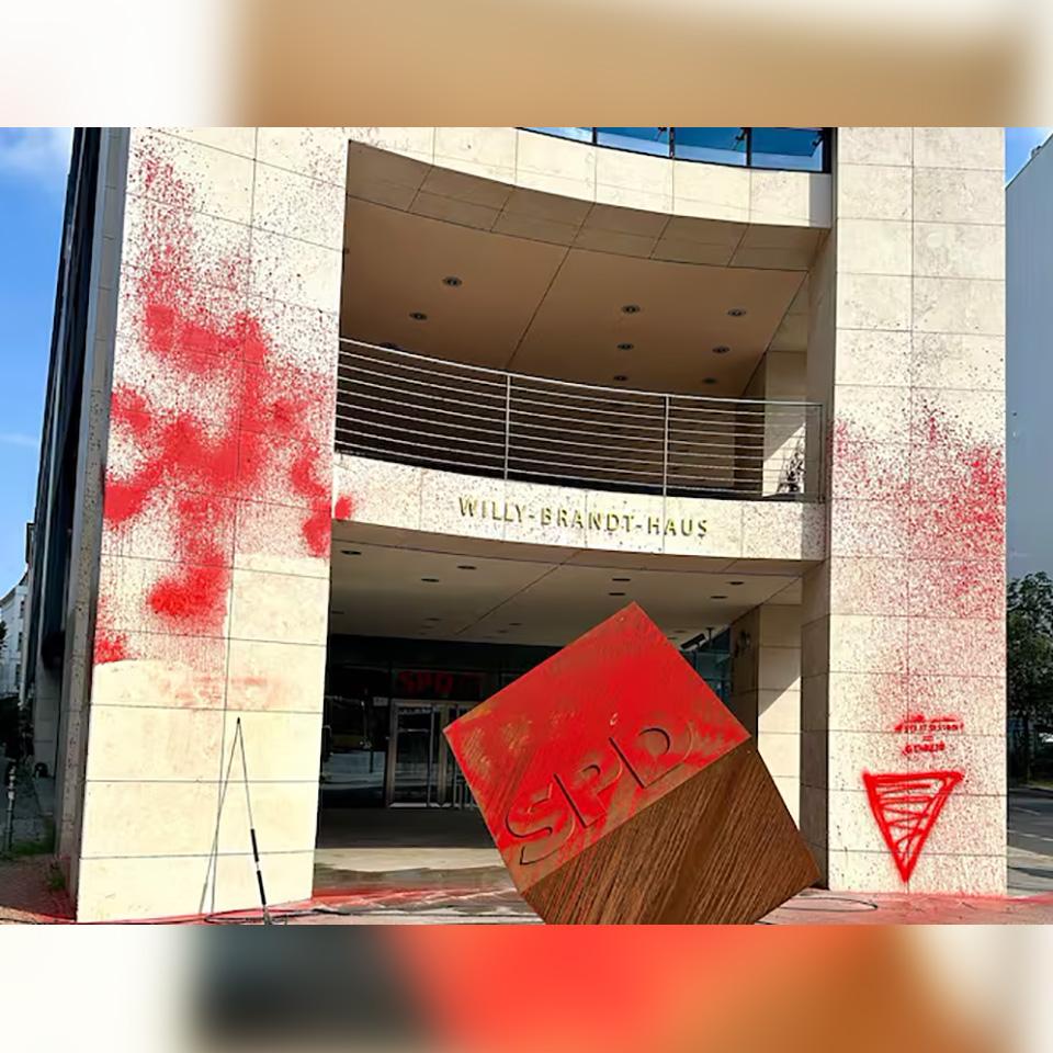 Quelle: https://www.maz-online.de/berlin/willy-brandt-haus-berlin-spd-parteizentrale-mit-farbe-besprueht-U7OM2D3ODFGB5PAFDQAQW5A6M4.html