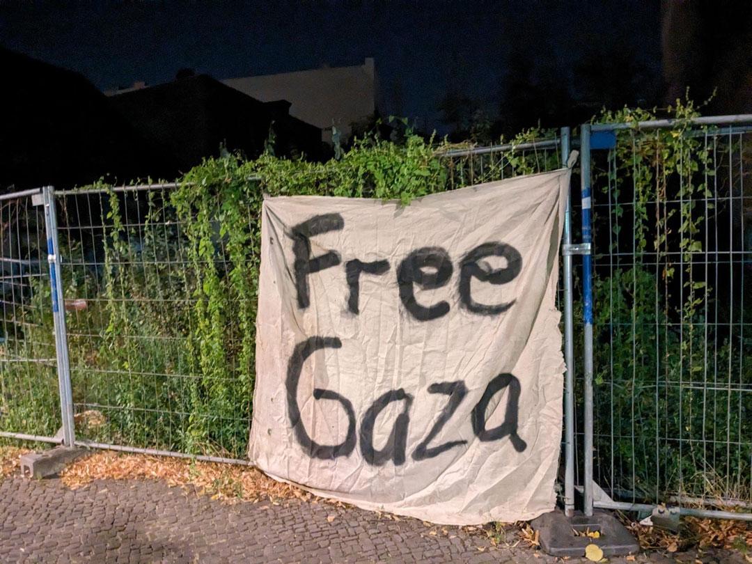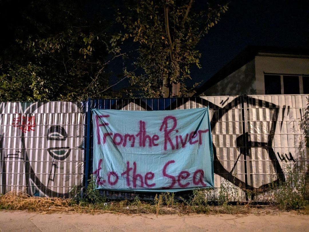 Banner-Aktion in Solidarität mit den Betroffenen der “From the river to the sea”-Prozesse