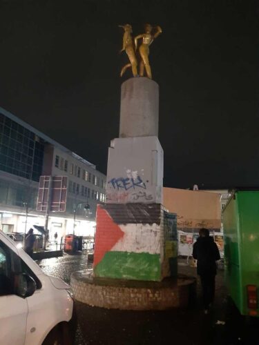 Previous photo reports on street art against the genocide: https://anarchists4palestine.noblogs.org/post/tag/street-art/