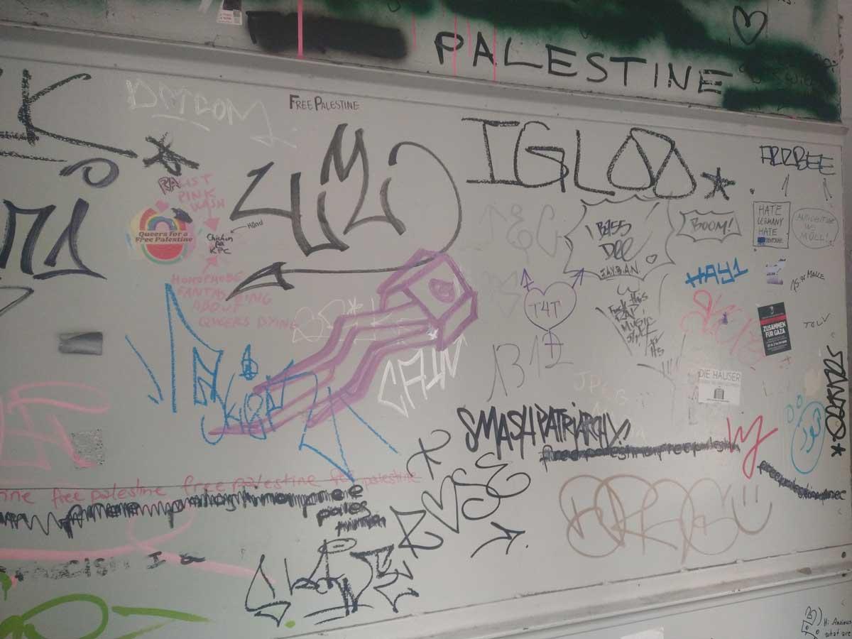 Previous photo reports on street art against the genocide: https://anarchists4palestine.noblogs.org/post/tag/street-art/