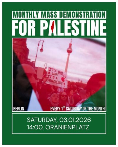 [2026/01/03] Monthly mass demo for Palestine in Berlin – Monatliche Massendemo für Palästina in Berlin