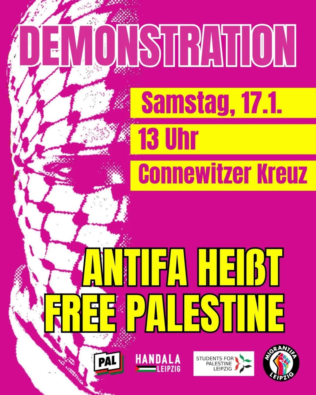 Gemeinsamer Aufruf der Leipziger Gruppen der Palästina-Solidarität zur „Antifa means free Palestine” Demonstration am 17. Januar