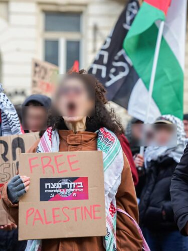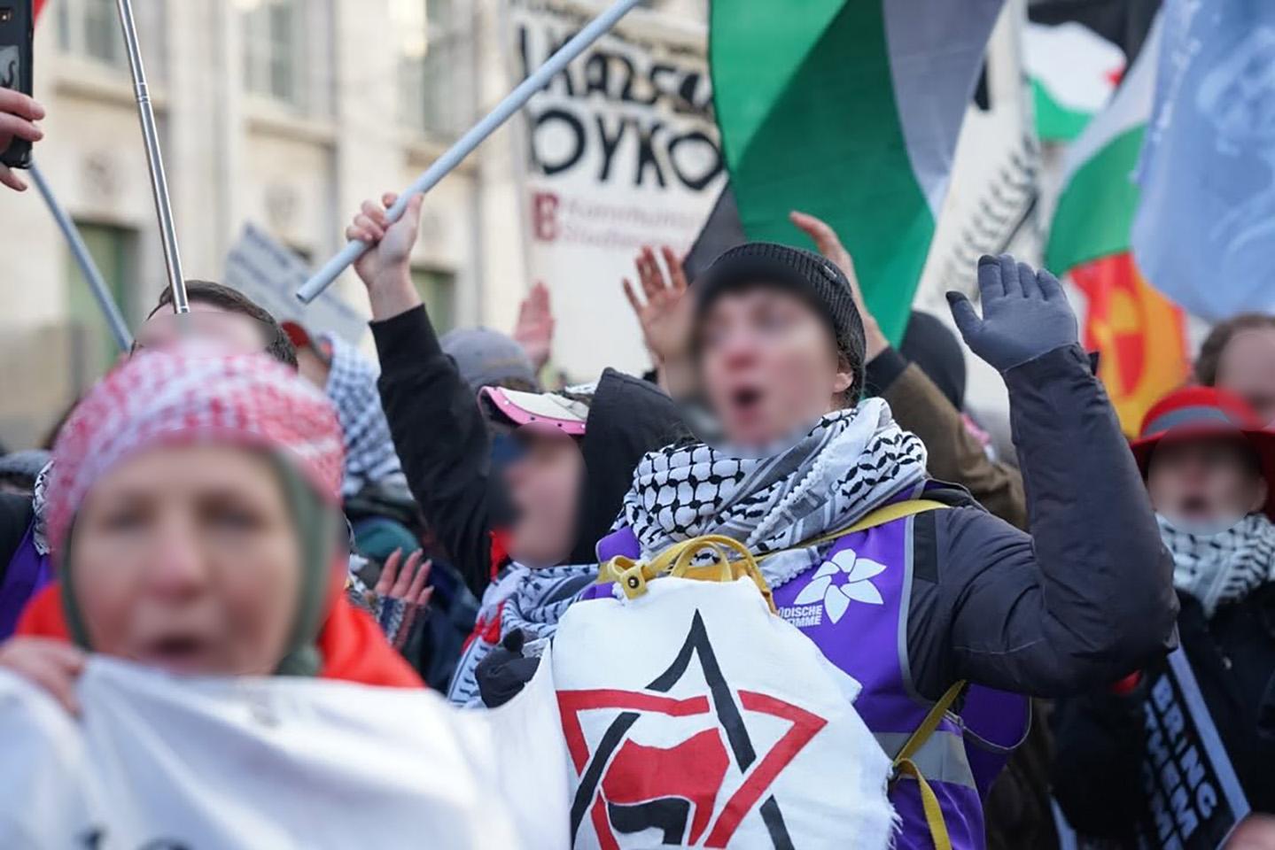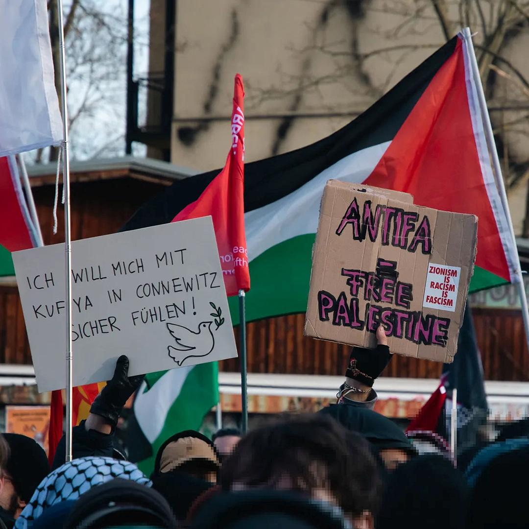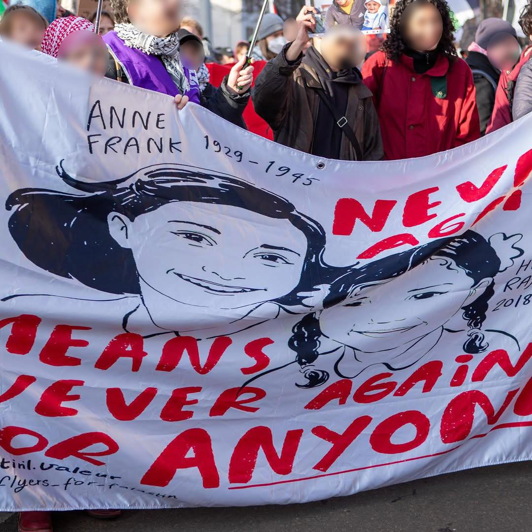 ich denke, ich brauche euch nicht von neu auf an zu erzählen warum wir heute hier sind. Ich denke ich brauche euch nicht zu erzählen wie lang schon dieser Genozid andauert, wie viele Palästinenserinnen auf brutalste Art gestorben sind und wie viele an Hunger und Kälte leiden. Ich brauche euch auch nicht zu erzählen wie viele Genossinnen hier und auch weltweit Hass, Morddrohungen oder Repressionen abbekommen, weil sie in ihrem Aktivismus drauf aufmerksam machen. Wir alle kennen die Bilder, Videos und Erfahrungsberichte aus Gaza und der Westbank und haben, im Vergleich zur braunen rassistischen Suppe dahinten, verstanden, wofür wir uns einsetzen und wen wir unterstützen. Wir alle wissen aber auch, dass wir mehr sind, in unseren Kollektiven zusammenhalten und uns nicht einschüchtern lassen. Die Waffen der Zios sind der IDF Fetisch, Rassismus, Springerpresse und bürgerliche Kapitalparteien. Unsere Waffe ist stärker und sie wird auch immer die Stärkste bleiben, nämlich die Solidarität.