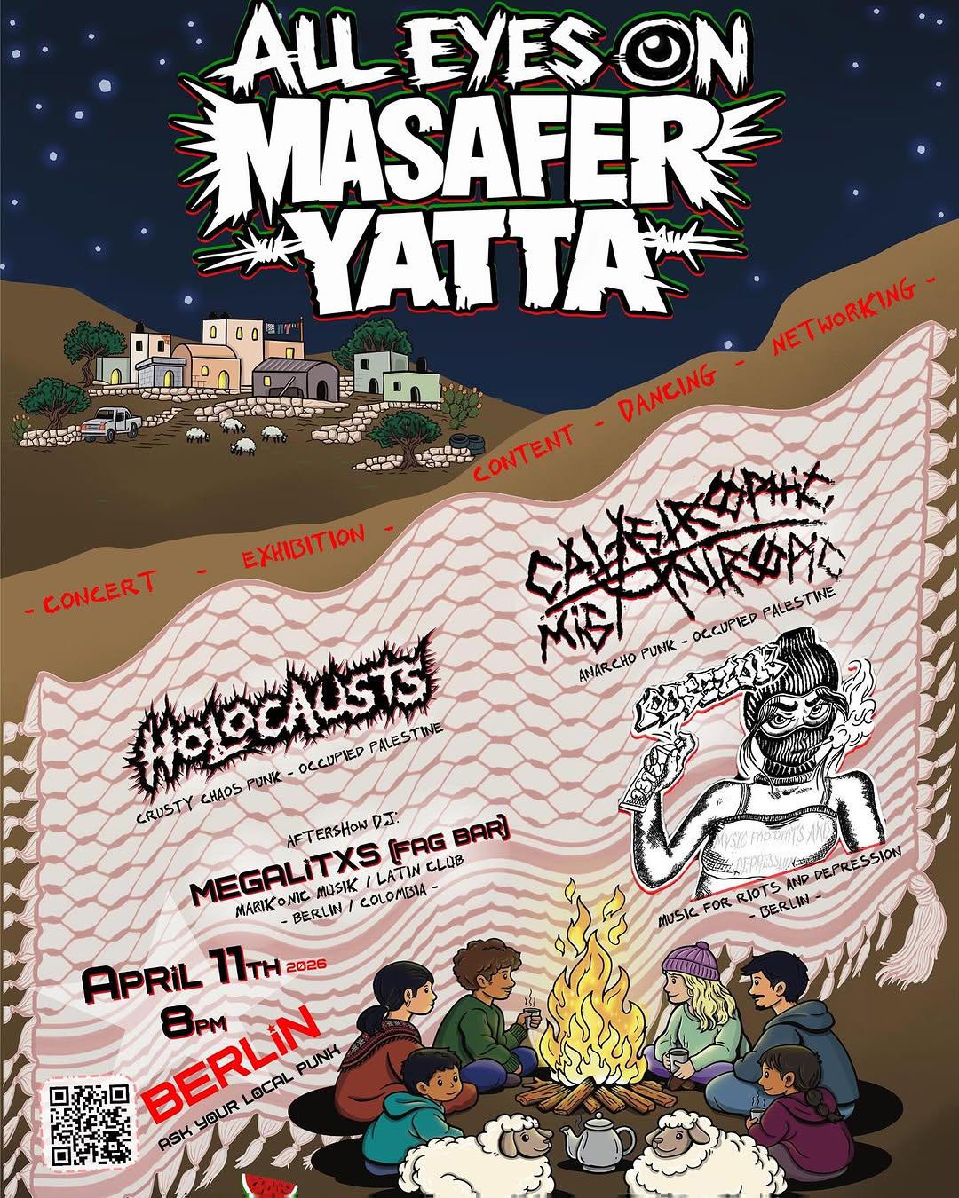 The event is part of the global solidarity weekend for the people of MASAFER YATTA from 9th to 11th April 2026 — join us in cities around the world to stand together, bear witness, and demand justice for a community facing forced displacement.