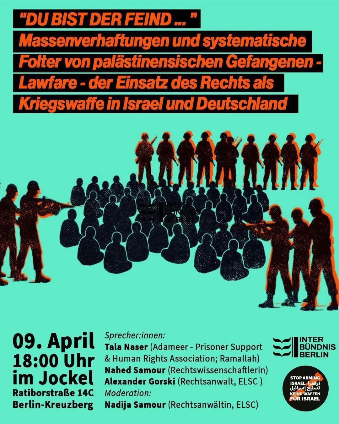 „DU BIST DER FEIND…” Massenverhaftungen und systematische Folter von palästineschen Gefangenen – Lawfare – der Einsatz des Rechts als Kriegswaffe in Israel und Deutschland
